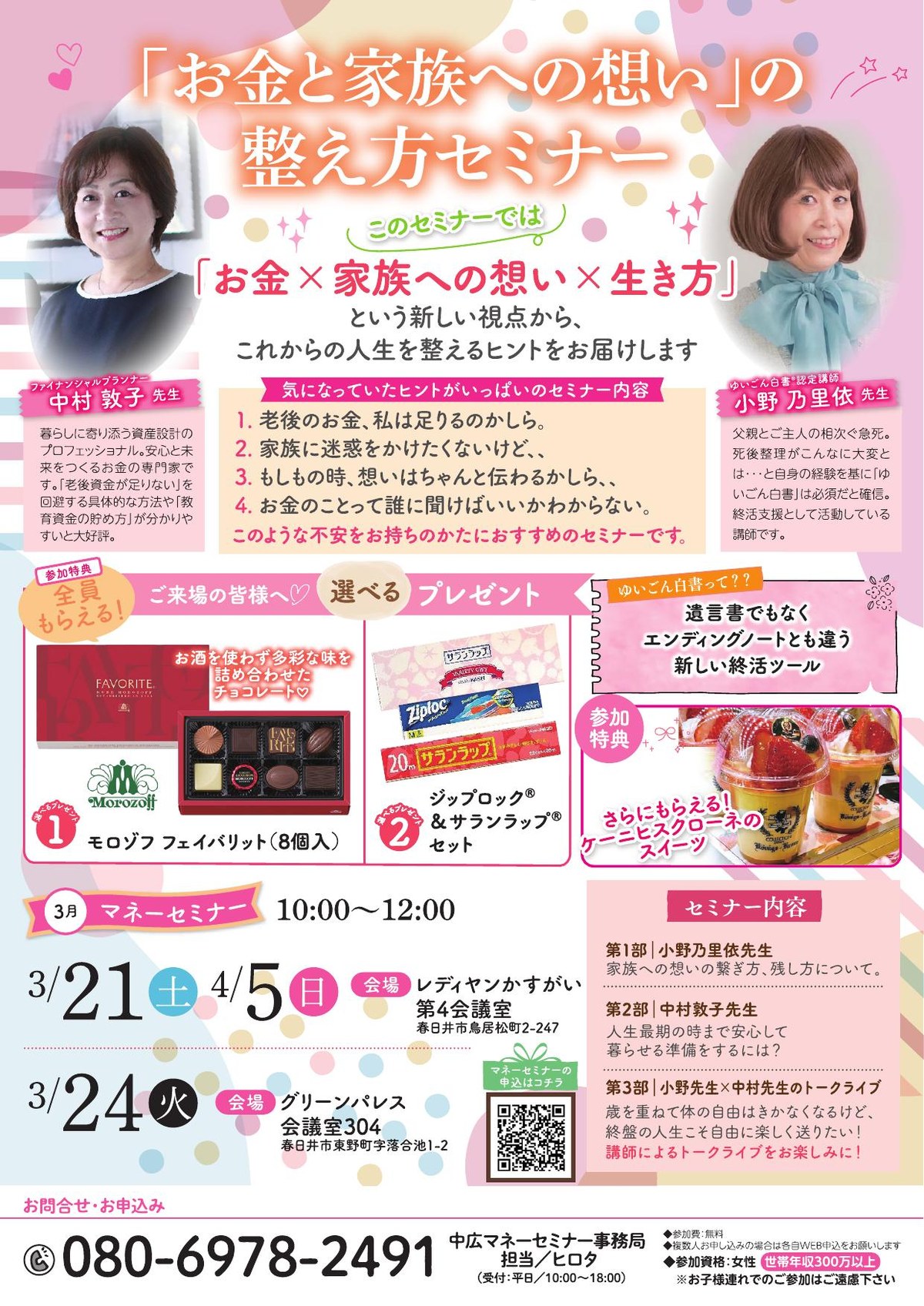 「今のままで、将来のお金は足りるのかな?」「ライフステージが変わったけれど、保険はこのままでいいの?」 そんな、言葉にならないモヤモヤを整理して、お金の知識をつけて、将来への希望と安心に変えるのが私たちのマネーセミナーです。